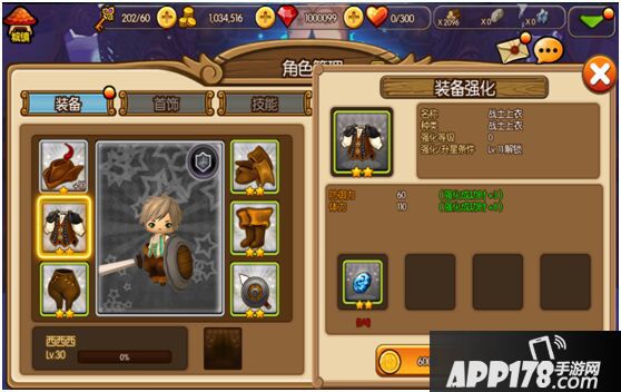 游戏中主角出生就自带一套装备,装备不能卸下。装备可以通过强化和升级来提升属性,从而让你变得更强!