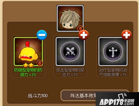 我们可以看见,在宠物布阵的界面可以清晰的看到三个空位中分别有盾牌,双剑,十字的标识,分别对应的是防御,攻击,和治疗。只有与图标相符的宠物占用这个阵法的各个阵眼的时候,才能激活阵法对应的宠物效果。
