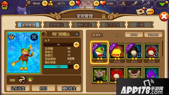首先让我们进入熟悉的宠物管理界面。可以看出,在当前版本的《心之城堡》宠物管理页面的设计元素中,无论是每一个按钮还是细节方面都是非常友好的。