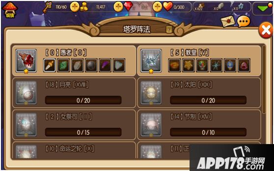 故事模式是《心之城堡》最基本的副本探险玩法。然而随着剧情的深入,在故事模式中出现的怪物越来越强大,为了打败这些怪物,我们需要借助塔罗阵法的力量来战斗!点击主界面的塔罗阵法按钮可以进入塔罗阵法界面。