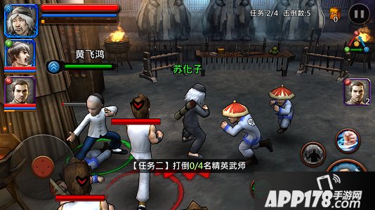 第二个任务打倒4名精英武师,精英武师有控制技能,尽量不要被群殴,否则会有抓狂的风险,此阶段也是积攒怒气阶段!