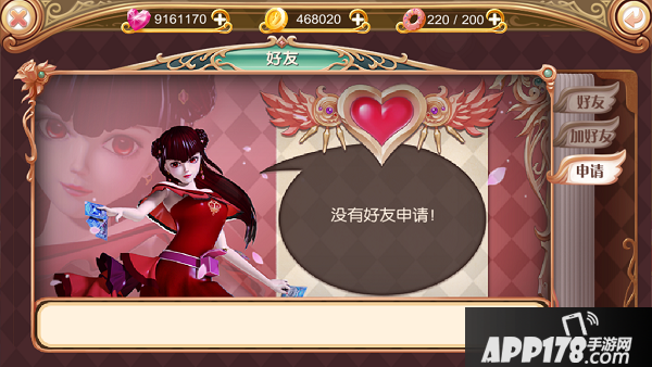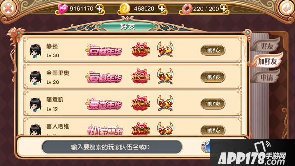 点击主界面【好友】按钮即可进入好友界面,右侧可以选择查看【好友】【加好友】以及【申请】列表的标签。
