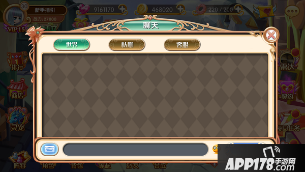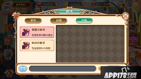 点击主界面的聊天气泡即可打开,除了用于交流的世界频道、私人频道外,还有联系客服的频道哦!