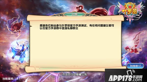 接下来让我们点击空白隐藏公告,选择区服点击便可进入!