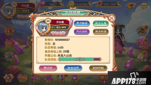 点击打开左上角萌哒哒的头像,除了能看到队伍的详细信息外,你可以在这里修改昵称、头像、性别哦!