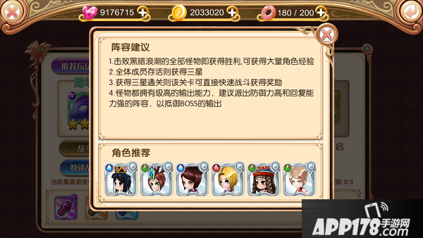 黑暗浪潮15级开启,每日0点重置,每天可打三次,如果通关3颗星就可以选择快速战斗,略过战斗过程为你节省更多时间。