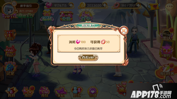 要是体力不足又急切需要的时候该怎么办呢?叶罗丽手游贴心为你准备了钻石购买方式来获得额外体力!