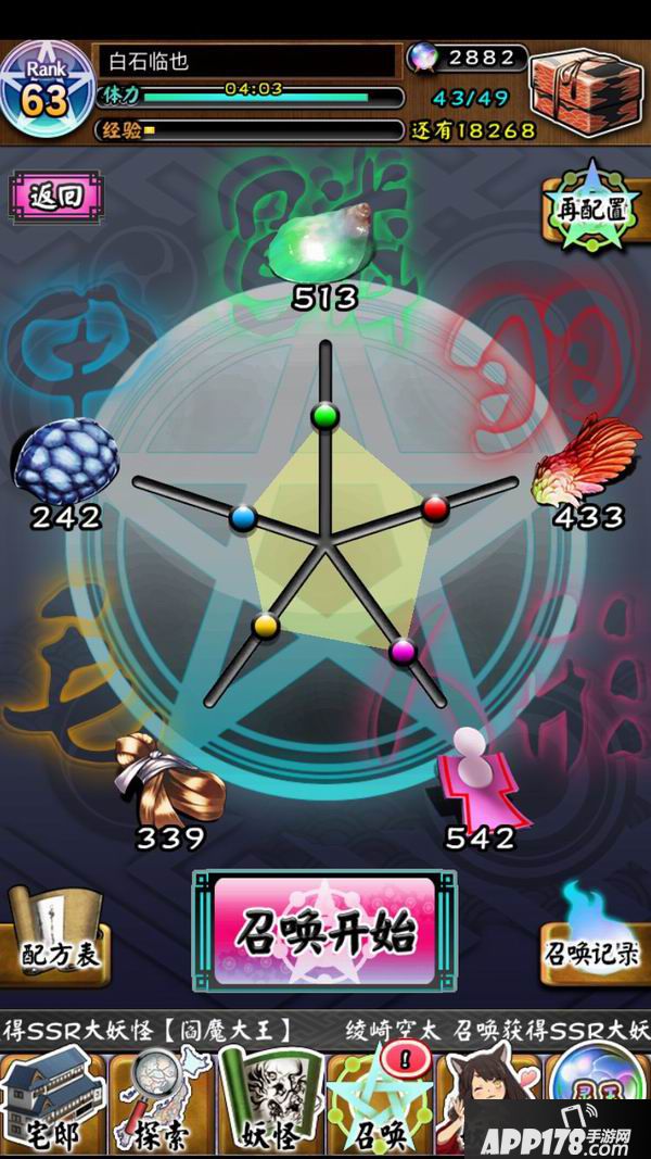 《妖怪百姬》会定期公开妖怪配方表,玩家通过这些配方表,可以提高使用素材抽到妖怪的几率,不用使用灵玉,也不用坑爹的11连抽,就可以获得自己想要的妖怪,真可谓是“非人民币”玩家的福音呐,玩家不妨按照下面的素材搭配一试究竟!目前国服版本配方表如下,后续会不断更新唷!!