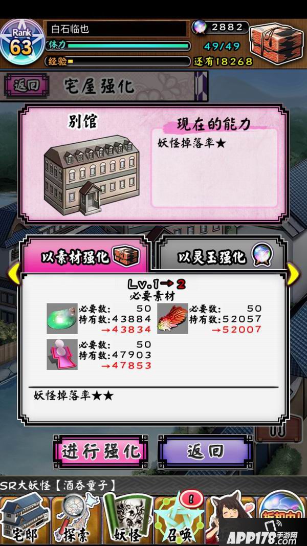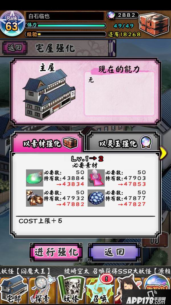 8.2. 主屋:增加妖怪Cost上限,也就是说可以上阵更多的高稀有度的妖怪。