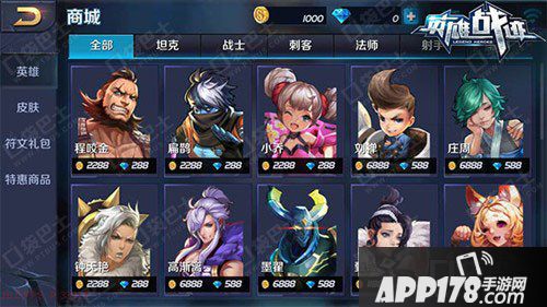 商城:商城界面中卫玩家提供了各种英雄的购买方式,玩家可以通过金币或者钻石的方式来获得这些英雄的使用权,同时还有匹配英雄的酷炫皮肤,高品质的符文礼包,以及金币和经验获取加成的特惠商品。