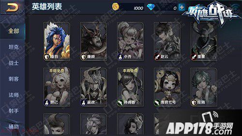 英雄:英雄选项卡中包含当前《英雄战迹》推出的所有英雄,在该选项卡中,玩家可以看到自己拥有和未拥有的英雄,英雄也分很多种,有坦克,战士,刺客,法师,射手,辅助。玩家可以根据自己的喜好和团队的需求,来选择英雄进行战斗。并且每周免费英雄也可以让你更好的体验英雄,选择最适合自己的英雄。