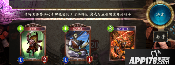 利爪的一击也可以酌情留下(但还是2费随从更加重要)。4费以上的卡牌一律全换,之后再抽回来便可,前期的节奏比较重要。对于速攻来说,先手优势比较大,但后手也可以玩。