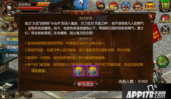 2.活动开启后,玩家可单人进行挑战,进入场景后可以组队杀怪,积分共享;