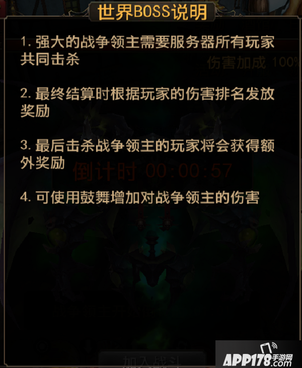 - 战斗过程中可使用“鼓舞”功能,以增加自己的攻击对Boss所造成的伤害。