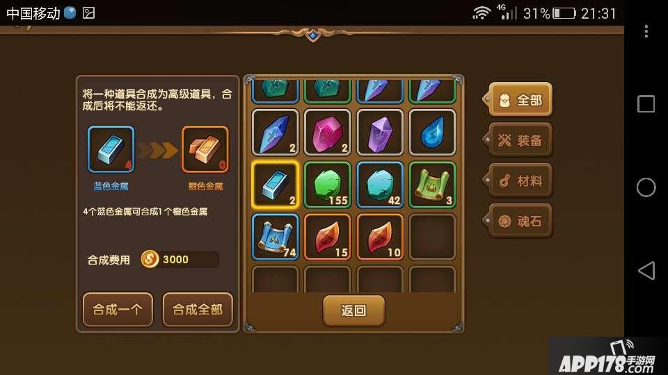 打造橙色装备是,发现没有橙色金属了,怎么办?去分解橙色装备?不,小弟是去分解蓝色装备,得到的蓝色金属后,再去合成橙色金属~~