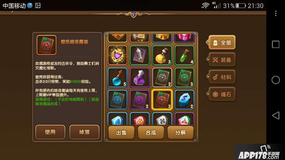 ,多出来的白色暗夜魔愉,都把他们合成橙色魔愉,这样吃掉的话,打完20个怪后,就有很多额外经验了