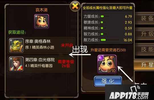 4、 精英关卡:在升星界面点开灵魂石图标就可以看到该英雄碎片可以在哪些关卡打到。不过不是所有英雄都有的哟~