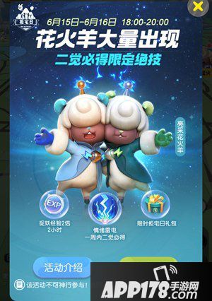 3、6月15日-6月23日,将花火羊培养至二阶形态将必定获得限定绝技-情绪雷电!