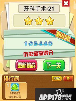 以上就是小编为大家带来的一起消消毒牙科医生21关满分通关攻略,希望大家喜欢。更多精彩的游戏攻略,敬请继续关注APP178手游网。