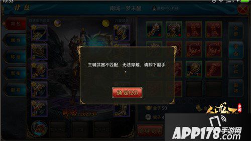 不过在更换武器时我们要先将原来的脱下,否则就会提示主辅武器不匹配,无法穿戴。