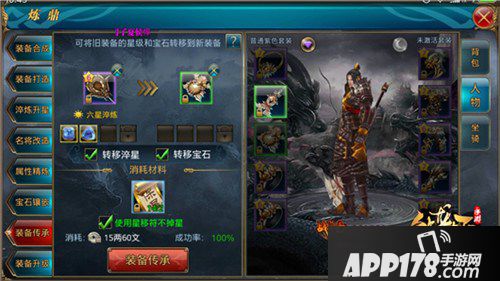 当准备好新职业的主副武器后我们可以在练鼎系统的装备传承里将原有武器的星级与宝石转移到新职业的武器上。不过需要注意的是如果你是物攻转法攻职业或者是法攻转物攻职业,你的宝石也是需要改变的。