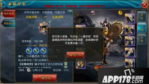 将军可以把背包或者身上的任意一件装备放入淬星栏中,点“一键求助”,您的族员就能看得到!