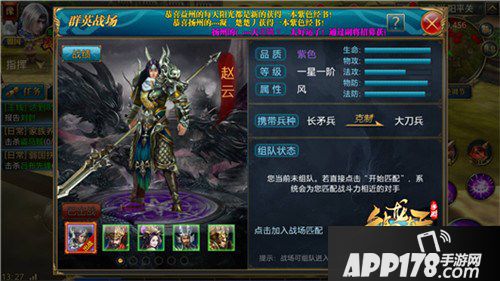 由于小编一时间未能找到合适的队友参与比赛,便选择了由系统自动进行的战场匹配,副将选择了当前拥有的最强紫将赵云。