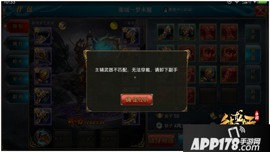 不过在更换武器时我们要先将原来的脱下,否则就会提示主辅武器不匹配,无法穿戴。