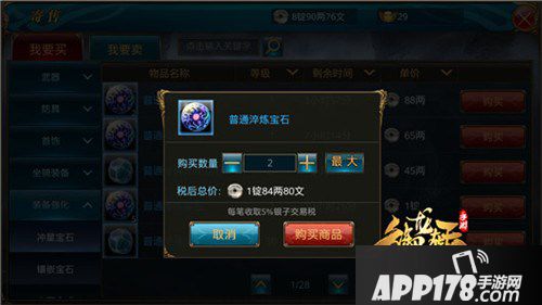 第二步:找到满意的物品后,选定该物品,点击右边“购买”按钮,会弹出购买确认框,确认购买数量点击购买商品,道具会由系统发送邮件至玩家邮箱中,请及时查收。