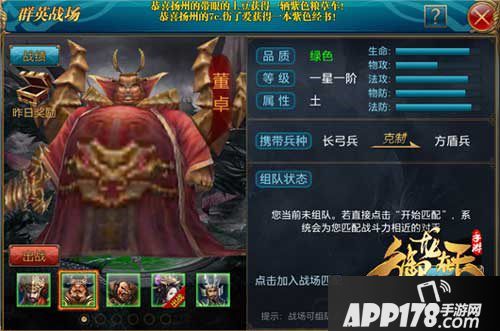 优势:土属性绿色副将获得几率比较大,近程攻击副将适合与重剑系职业搭配使用,副将携带兵种是长弓兵克制方盾兵。