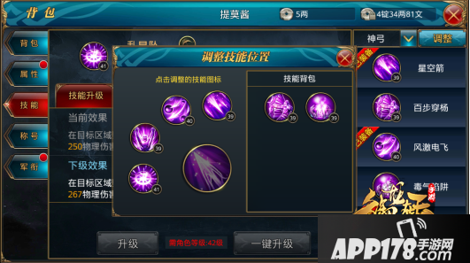 由于狂骨增加附加伤害,则应优先强化星空箭、风激电飞、等伤害较高的技能,而天诛技能提升攻击比,因此优先强化攻击比加成较高的毒气陷阱、射手之魂。