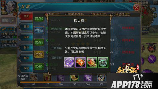 通过小编的详细讲解,大家是不是对“砍大旗”玩法有个很深刻的了解呢,那么就叫上游戏中的小伙伴一起去“砍大旗”吧~更多精彩攻略~就在APP178手游网~记得要关注哦~