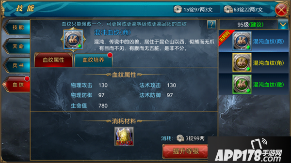4、可使用龙纹和龙玉,升级成更高等级和更高品质的血纹。