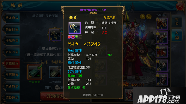 1.属性精炼只能在人装上使用,坐骑装备不能使用哦;