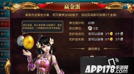 大象任务成功结束时(例如开启的是紫色大象,会退还每位成员在最初押注的银子及3枚金蛋),如若失败,金蛋则就会变成银蛋了哦,奖励也会大打折扣。所以家族成员在拉大象活动中都要积极参加守护家族大象哦!