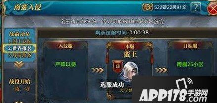 南蛮入侵这玩法也就是到其他的服去作战,作为入侵的角色,能够在相应的地方获得乐师以及宝藏,还能够获得其中的南蛮 武勋,相应参加这个玩法的话还是需要事先进行报名的,在战斗力越高的话也就有更大的成功可能,在报名失败的时候,也就只能够等着人家来打了,在南蛮入侵防守的时候也是能够获得银子以及南蛮武勋的。