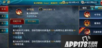 1.中平枪:蓄力刺出巨枪,对目标范围内玩家造成153%物理攻击,并附带额外的物理伤害;