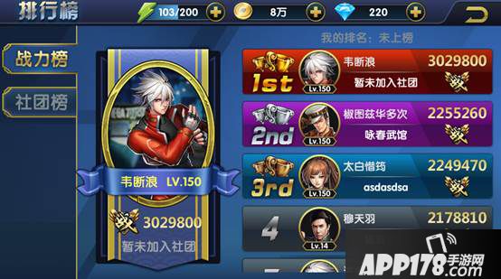 一、榜单分为战力榜和社团榜两个榜单。