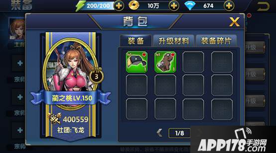 装备背包可查看玩家通过副本和活动中获得的装备、升级材料和装备碎片信息、出售、使用和合成;