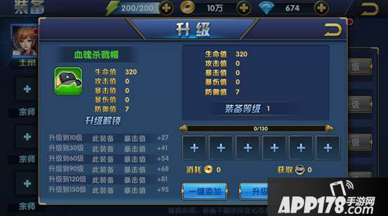 通过吞噬装备和升级材料获得装备经验,用来提升该装备等级、当装备等级达到一定条件会解锁增加相应数值提示战力。一键添加会自动为玩家填满上方六个格子,优先填充升级材料其次是装备,玩家在点击升级方能升级成功;玩家也可以通过点击格子添加想要融合的材料和装备并点击升级;添加并升级则是系统会把背包中所有升级材料和所有低于当前升级装备品质的装备自动添加并升级。