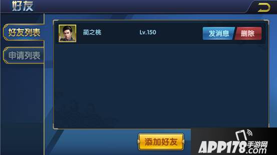 在好友列表中玩家可以查看自己所有的好友,并且可以给好友发消息或者删除好友。