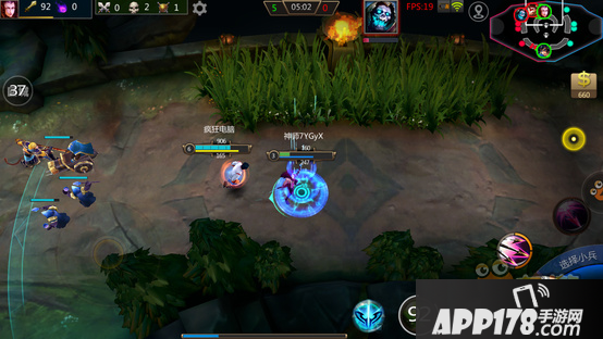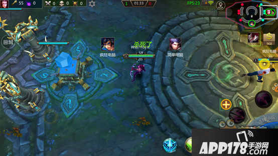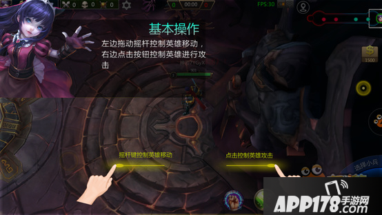 游戏采用了两种走位操作模式,一种是点击屏幕来控制走位,另一种则是按住屏幕左下角会出现虚拟摇杆控制走位,除此之外在屏幕右下角还有普通攻击和技能释放的战斗控按键。