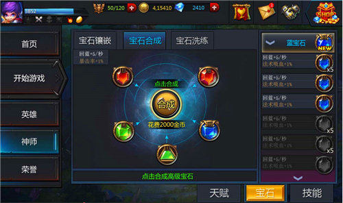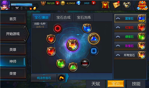 神师们可以通过游戏内商店使用金币自由选择自己所需要的宝石,某些特定的活动也可以领取到丰富的宝石奖励。