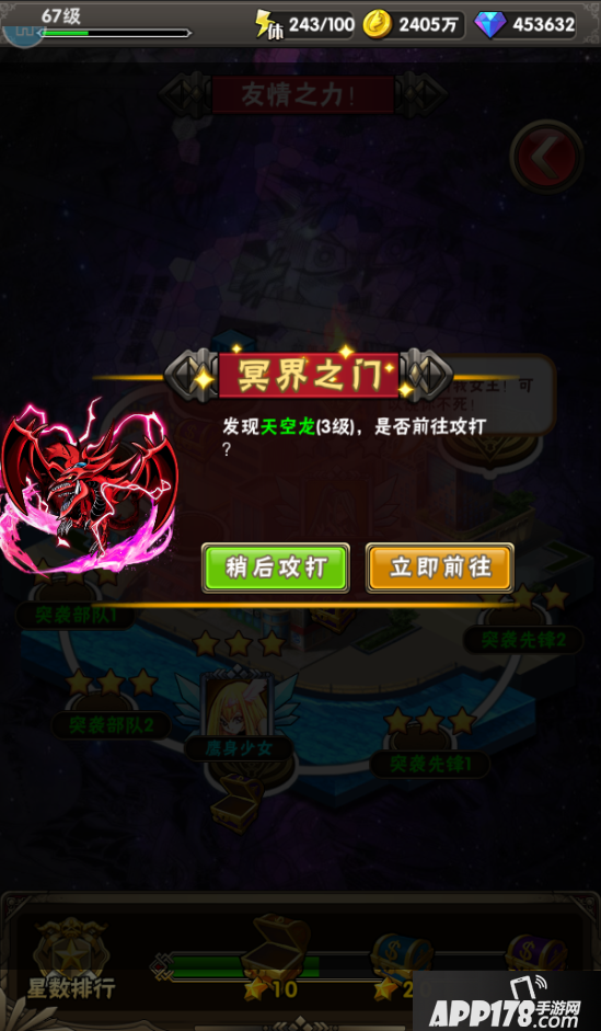 在《游戏王联盟》中,达到35级后,通关剧情副本或者扫荡时,有几率开启冥界之门中的强大怪兽,强敌出现后也可以从“历练”->【冥界之门】中进入。