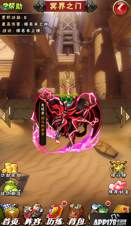 攻打怪兽时,每消耗一个挑战书,都可获得50战功。如果进入冥界之门的每日功勋榜和每日伤害榜前200名,还可以获得额外的排名战功奖励!