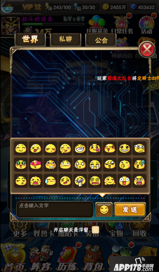 聊天系统分为世界聊天与私聊两个部分!还贴心的为各位主子们配备了许多萌萌哒表情以供大家愉快的聊天哟!