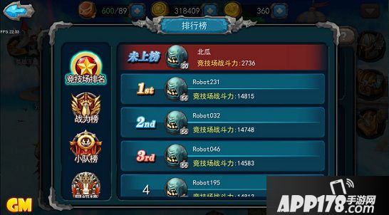 在竞技场中还能通过排行榜查看玩家在服务器中各竞技场榜单的排行情况,包括竞技场、战力、星级、金币、钻石等排行榜。