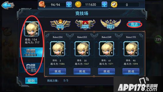 每个玩家刚开启竞技场时都是新手级别。玩家可以在当前段位选择合适的对手进行挑战,也可以直接挑战下个段位中的玩家进行挑战,挑战成功后可提升玩家段位。(例如:青铜段位玩家可直接点击白银段位选择对手并进行挑战。)