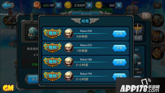 每次竞技场战斗,系统还会存战报记录,玩家可随时查看及分享。