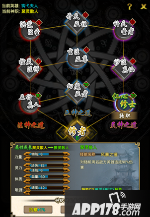 说完羁绊就要说英雄自身了,每个英雄都有3条可发展的路线,每条路线代表着一种技能和属性加成。人生是自己选择的,英雄的路也是自己选择的,在英雄达到20级的时候就得面临着第一次职业选择了,不过各位大侠也不用太过担心,英雄的职业是可以自由转换的。只要研习过的的神职都可以自由转换。而且研习职业还有属性加成哦,学的越多能力越高么。